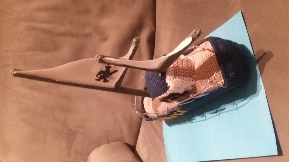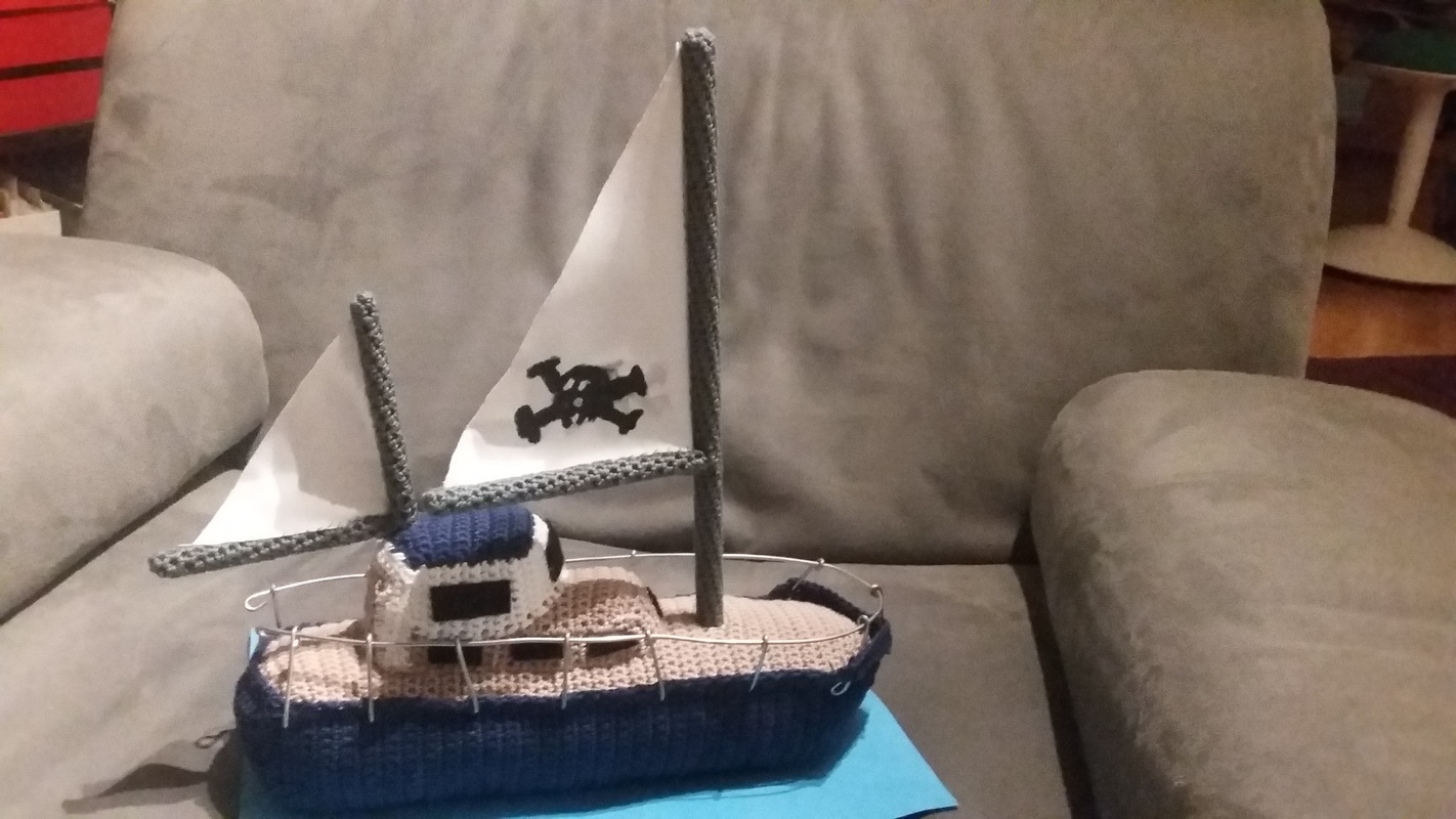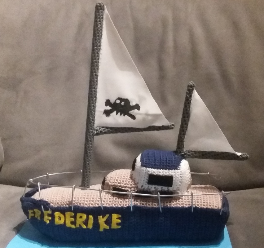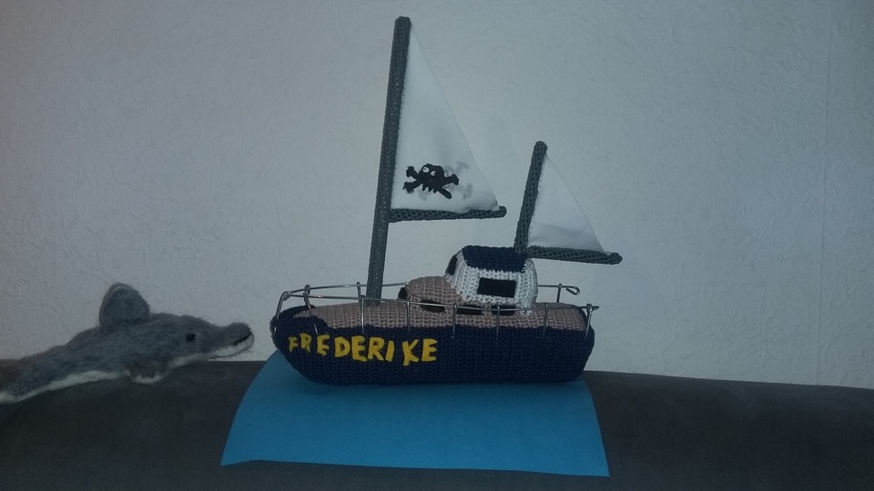 Frederike das Segelboot ist eine Anleitung für ein Piratenschiff mit einer Breite von ca. 30 cm und 32 cm hoch.