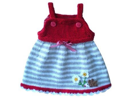 Gestrickt wird es mit Baumwolle. Das Kleidchen sieht in allen Farbkombis süß aus.