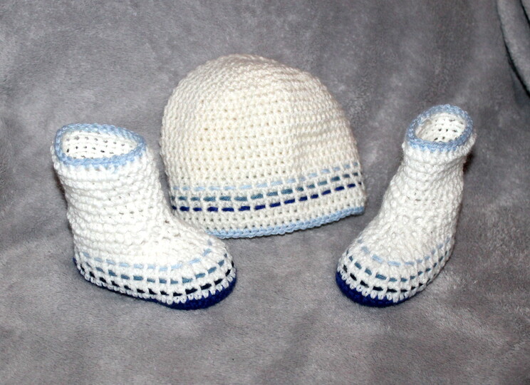 Diese Anleitung beinhaltet zusätzlich zu den vier verschiedenen Schühchen auch noch drei unterschiedliche Mützengrößen, damit das schicke und stylische Baby alles passend zusammen tragen kann.