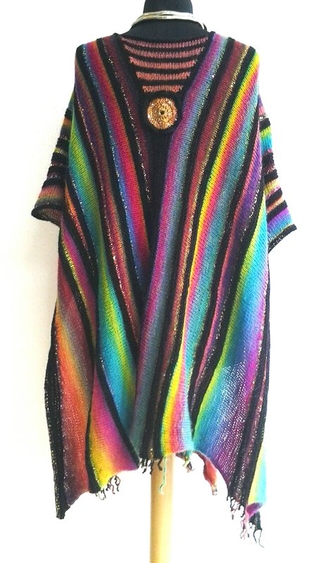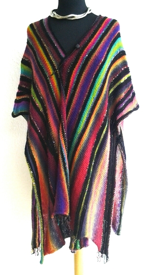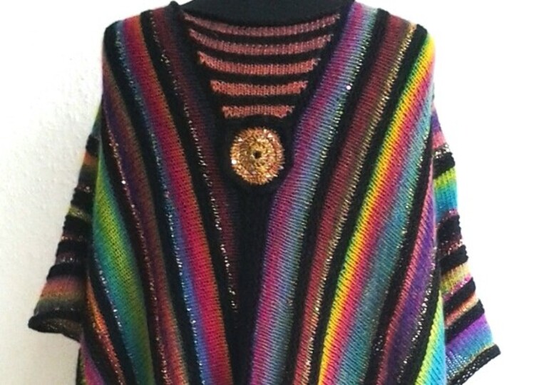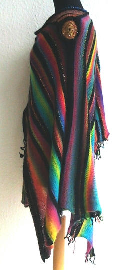 Equinox ist aus dem Poncho Equilibrium hervorgegangen, der bis Körpergröße 165 geeignet ist. Für größere Frauen gibt es jetzt Equinox. Es ist vielseitig zu tragen und bestens geeignet, ein paar Problemzonen zu kaschieren.