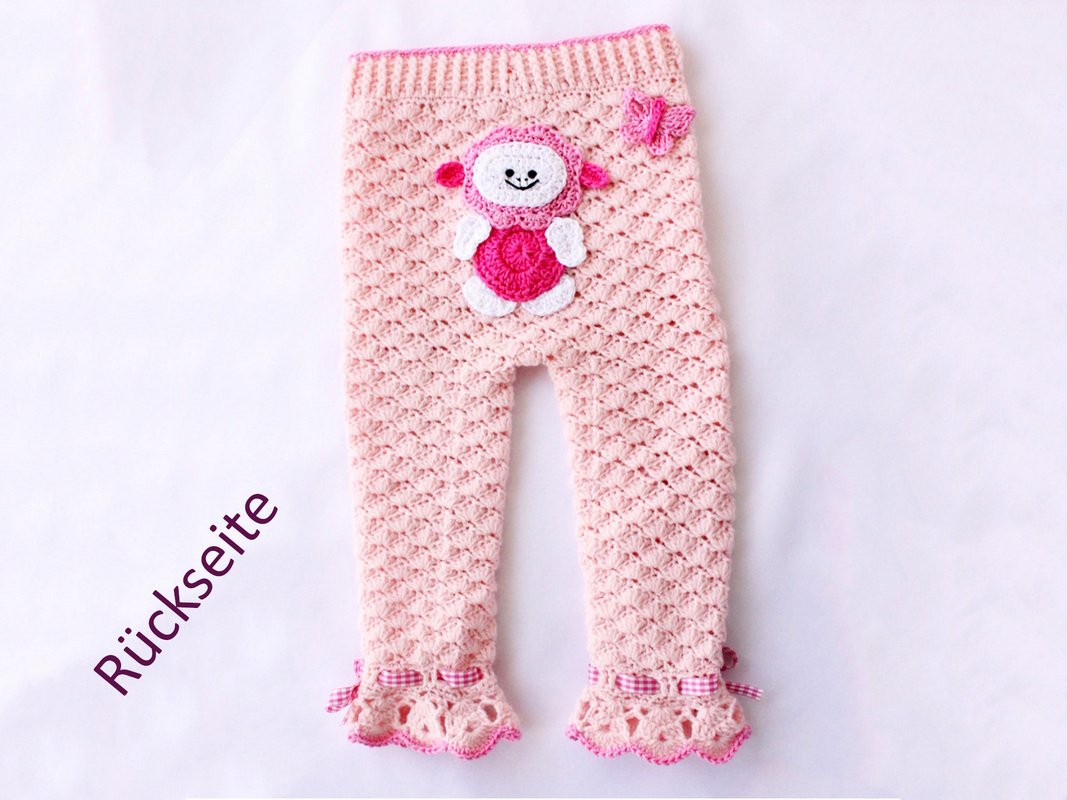 Die PDF-Häkelanleitung besteht aus bebilderter Anleitung zum Häkeln einer Babyhose mit den Applikationen "Schaf" und "Schmetterling". Damit können Sie schnell schöne Babyhose in der Größe 50/56, 62/68,74/80, 86/92, 98/104, für Ihr Kind (Enkelkind) häkeln.