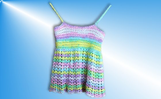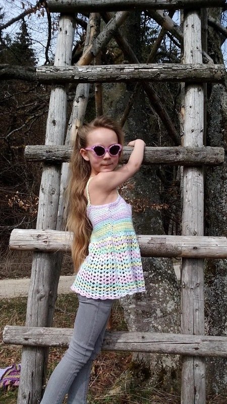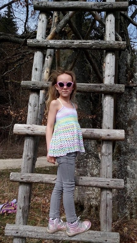 Die ausführliche Häkelanleitung umfasst 6 Seiten mit 12 Bilder und einer Häkelschrift. Zu Beginn wird der obere Sternchenteil des Tops gearbeitet und dann praktisch und schnell nur noch im Kreis herum. So sieht man während des Arbeitsprozesses, wie das Top langsam immer länger wird und eine Anprobe zwischendurch ist kein Problem.