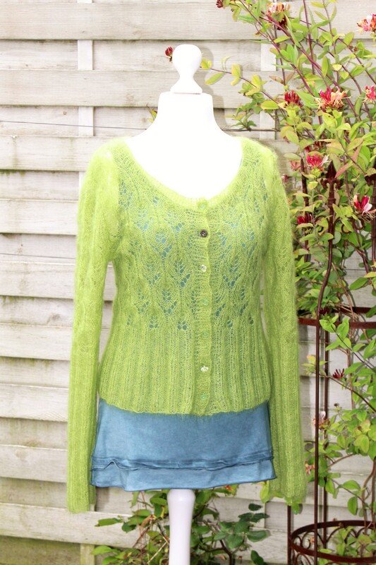Das zauberhafte Jäckchen AMELIE im zeitlosen Blattmuster ist mit seinen ca. 100 - 125 g Gewicht leicht wie eine Feder und zudem kuschlig weich, mit hohem Wohlfühlfaktor! Im Herbst wärmend aber nicht zu dick und auch für einen kühlen Sommerabend ist man damit bestens versorgt. Das Mohairgarn mit Seidenbeimischung ist in vielen Farben und Fabrikaten erhältlich, so dass sicher alle ihre Lieblingsfarbe finden können! Die Jacke wird in einzelnen Teilen gestrickt und anschließend zusammengenäht. Die sehr ausführliche Strickanleitung führt dich sicher zum Ziel, alle Teile sind detailiert beschrieben.