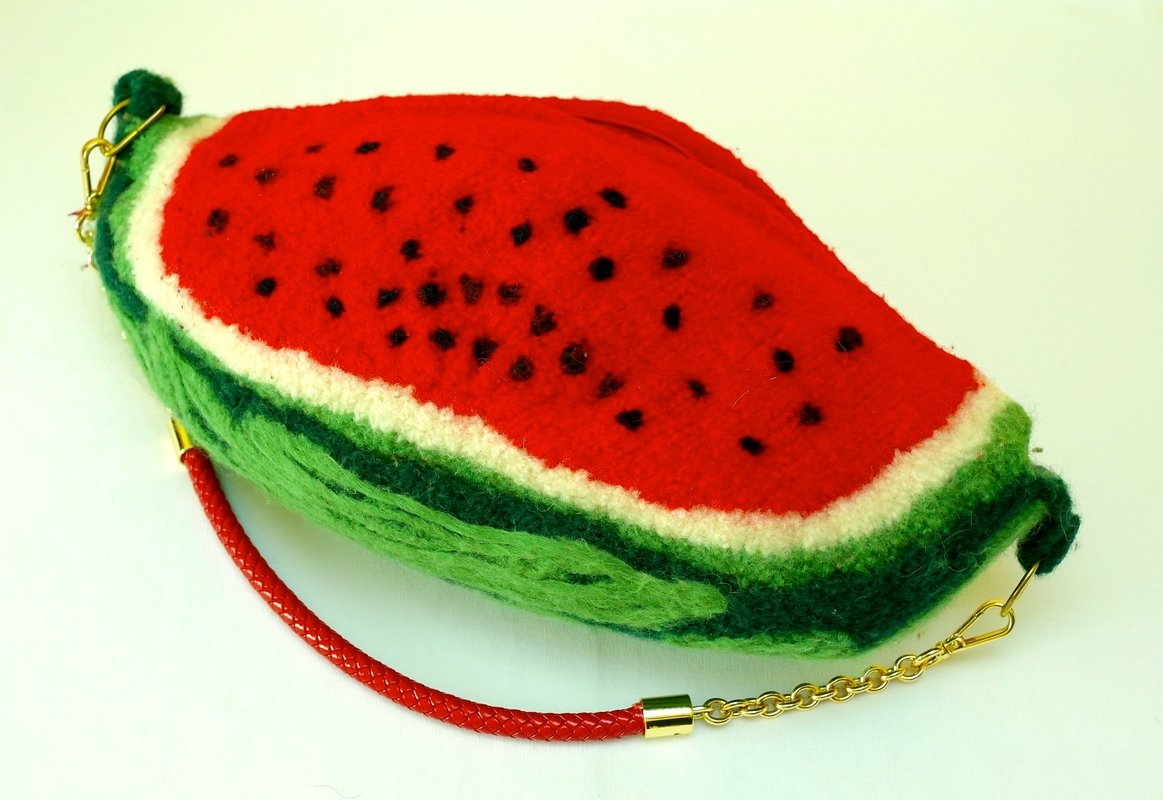Während meines letzten Sommerurlaubs habe ich den Geschmack von Wassermelonen ausgiebig genossen und dabei kam mir die Idee für diese wunderschöne Tasche. Karpousi, das ist der griechische Name für Wassermelone, ist ein echter Hingucker.