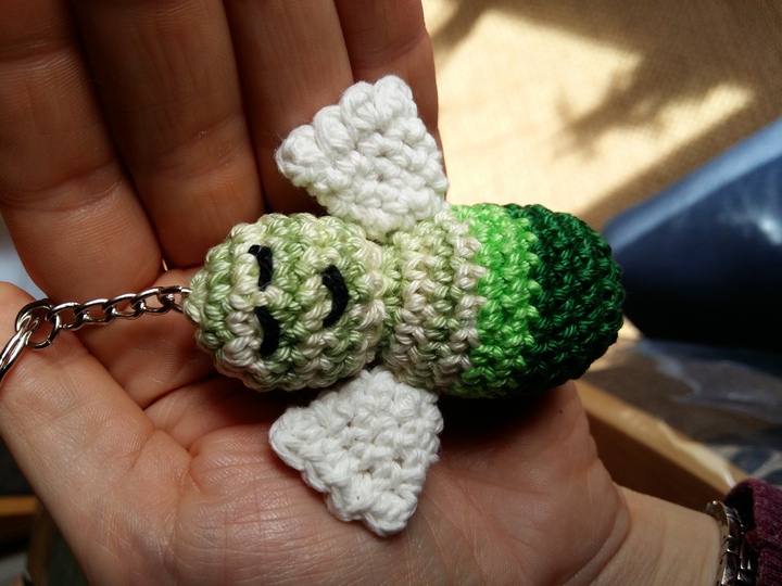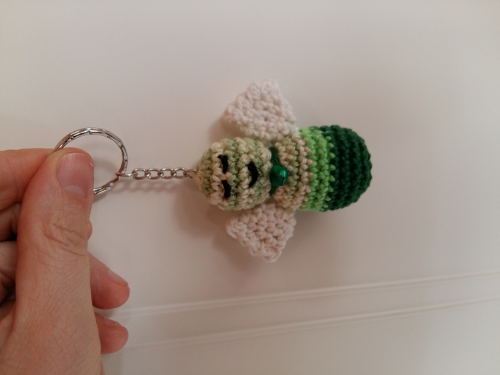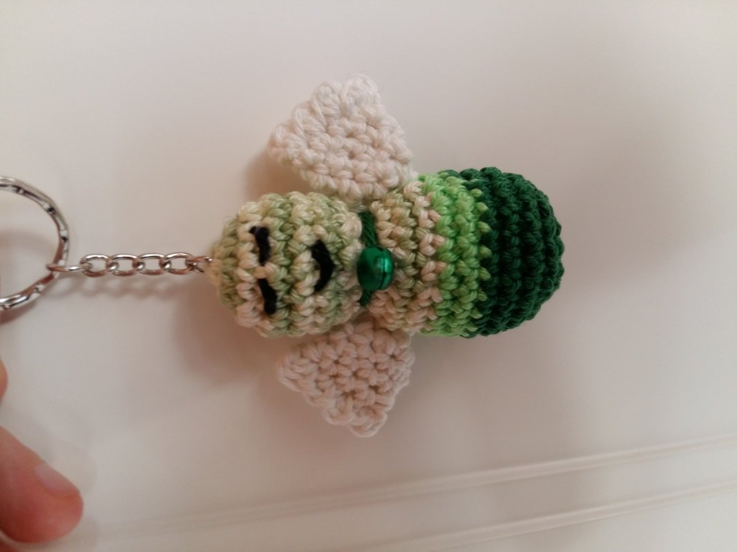 Du benötigst nur ein Garn deiner Wahl welches mit NS 3 zu häkeln ist, einen Schlüsselring und bei Bedarf ein kleines Glöckchen.