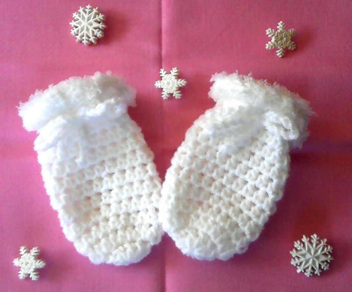 Luftmaschen, feste Maschen, Kettmaschen, und Stäbchen. Die Handschuhe sind schnell fertig, weil sie überwiegend aus halben Stäbchen und Luftmaschen gehäkelt werden.