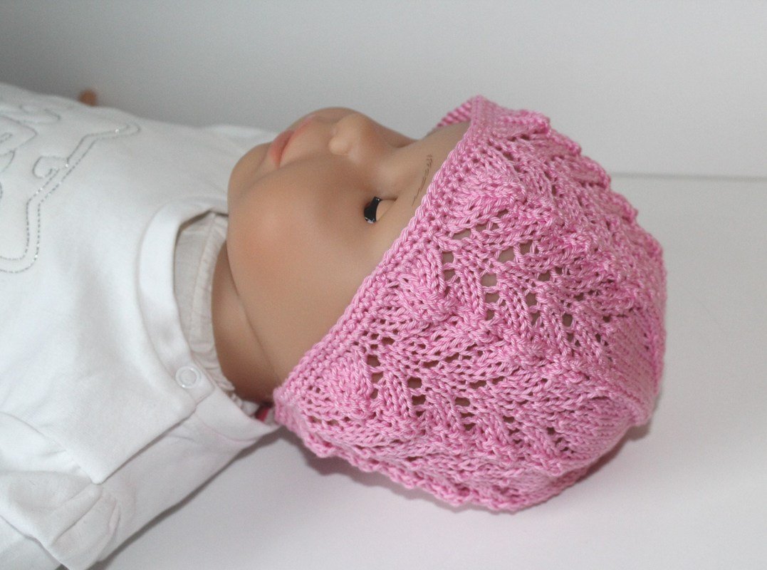 Strickanleitung Baby-Mütze Ajourmuster, Taufmütze, ca. 5 - 12 Monate