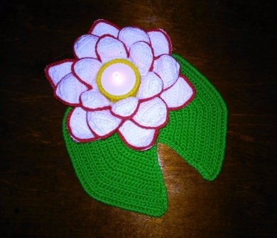 Verkauft wird eine Häkelanleitung für das Teelicht " Seerose ".
