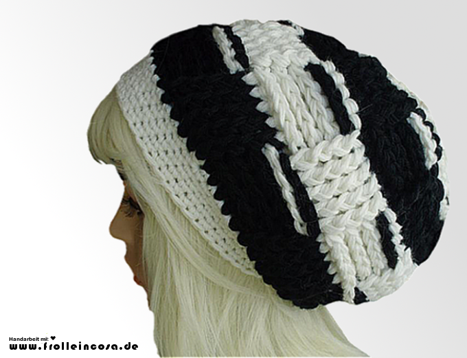 Tolle Beanie-Mütze in zweifarbigem Flechtmuster.