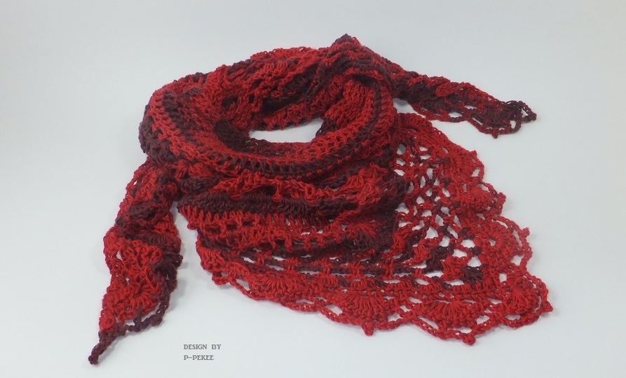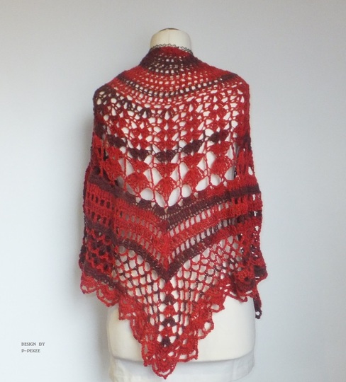 Das Dreieckstuch wurde mit einem tollen Mustern gehäkelt. Dies ist leicht nachvollziehbar. Die Reihen sind Schritt-für-Schritt erklärt.