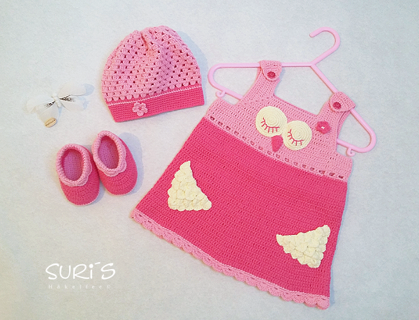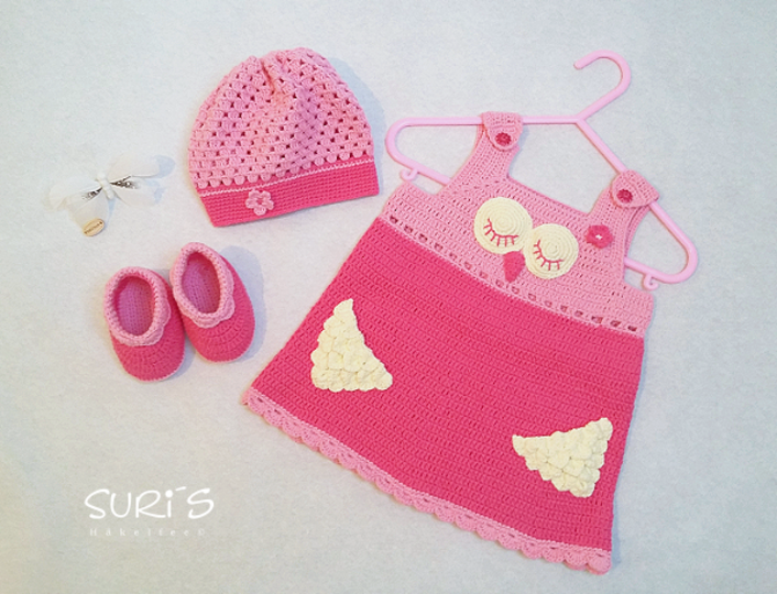 Dieses süße Eulen Babyset besteht aus einem Kleid