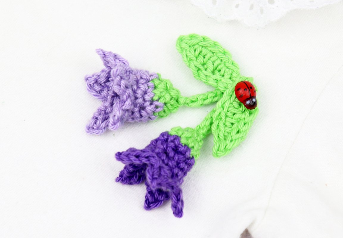Die umfangreiche, reichlich bebilderte PDF-Häkelanleitung zum Häkeln von Mini-Glöckchen mit Blättern zum Dekorieren des Hauses und Kleidung oder als Mitbringsel für die Freunde.