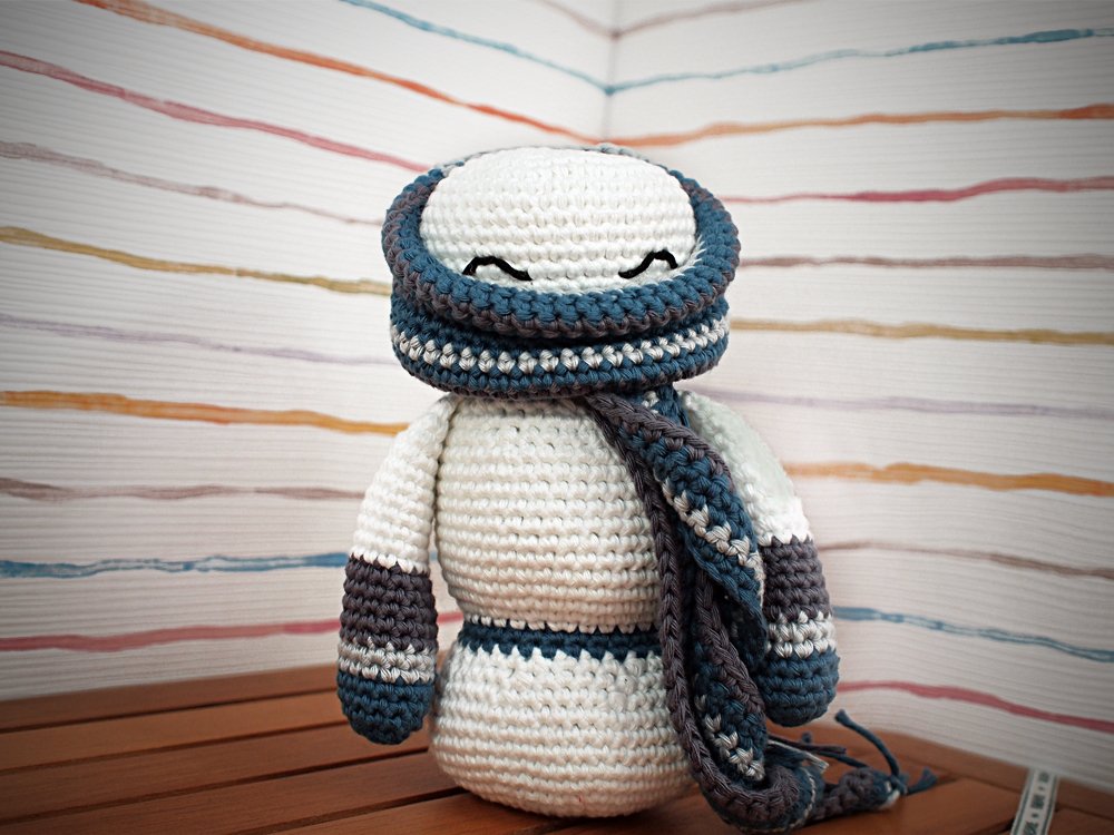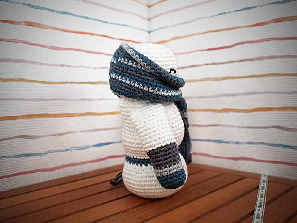Dein Mutzel bringt dir ca. 6-8 gemütliche Häkelstunden und wenn dir das nicht reicht dann häkel ihm gleich noch einen Freund. Bei gleicher Garnstärke wächst er bis zu einer Größe von ca. 19cm.