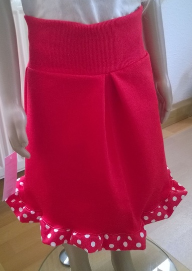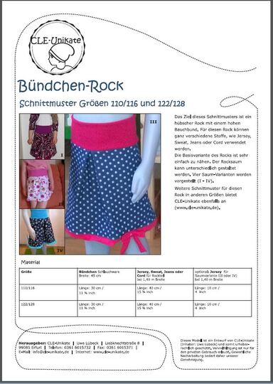 Das Ziel dieses Schnittmusters ist ein hübscher Rock mit einem hohen Bauchbund. Für diesen Rock können ganz verschiedene Stoffe, wie Jersey, Sweat, Jeans oder Cord verwendet werden. Die Basisvariante des Rocks ist sehr einfach zu nähen. Der Rocksaum kann unterschiedlich gestaltet werden. Vier Saum-Varianten werden vorgestellt.