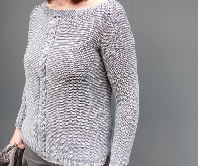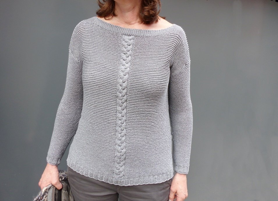 Eine Strickanleitung für einen Strickpullover mit einem Zopf und mit kleinen Seitenschlitzen. Die softe Baumwolle sorgt für ein sanftes Tragegefühl auf der Haut.