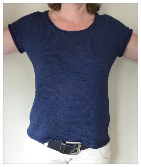 Eine gut verständliche Strickanleitung in den Größen S - XXXL für einen saloppen Kurzarmpulli aus einem dünnen Bändchengarn.