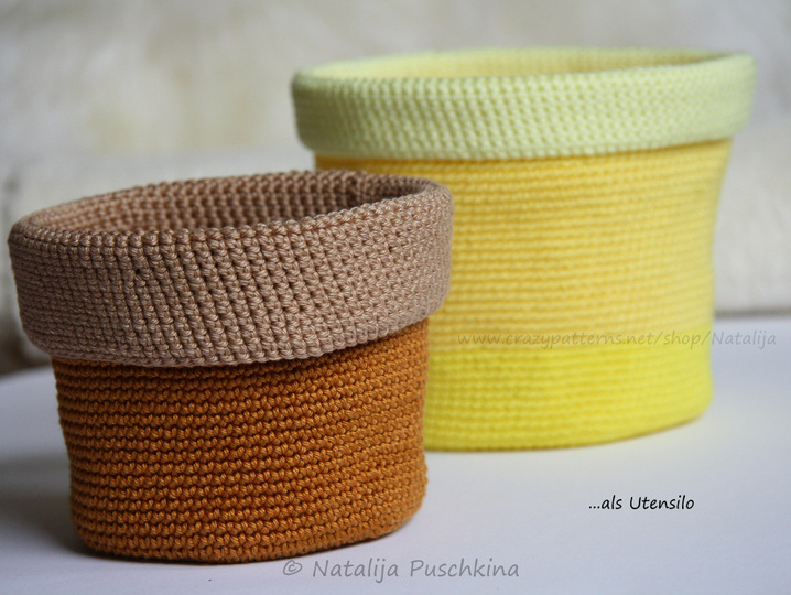 Eine Anleitung - viele Häkel-Variationen. Verwende diese Körbchen als Utensilo, als Aufbewarungskorb, als Blumentopf, als Vase etc.