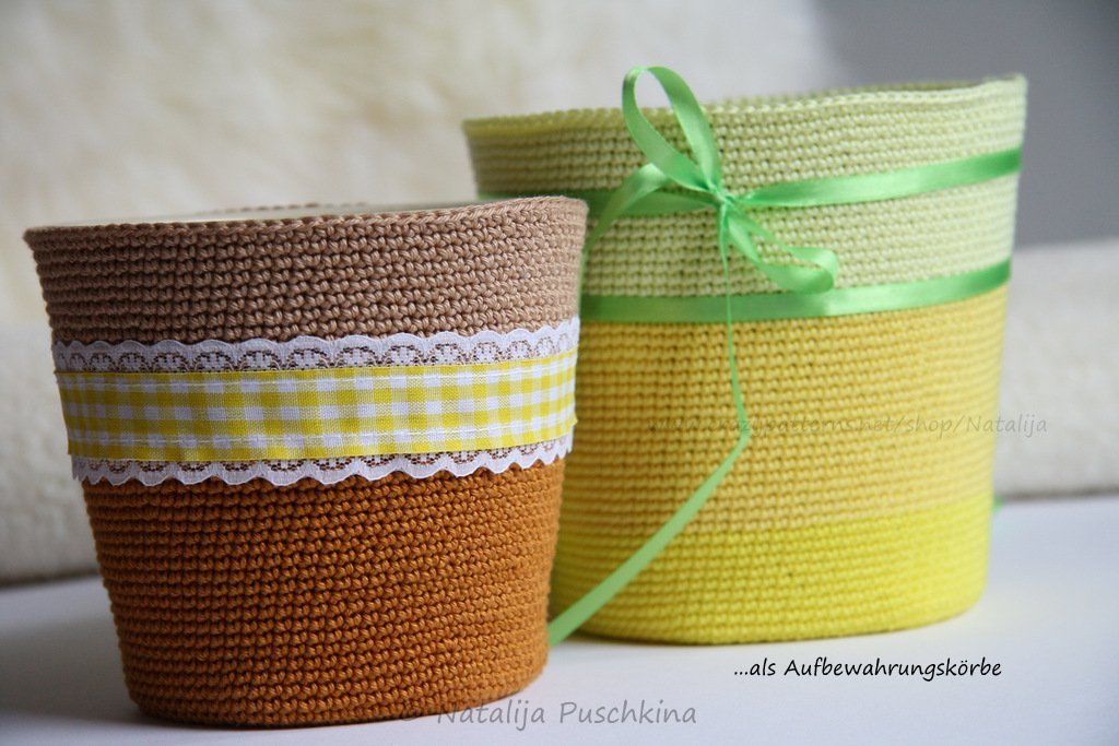 Verkauf der von Dir hergestellten Körbchen ist möglich: Du darfst die Artikel, die Du mithilfe meiner Anleitung zum Häkeln von Körbchen gefertigt hast, in beliebiger Stückzahl gewerblich verkaufen. Bitte den Hinweis: „Angefertigt nach dem E-Book von Natalija Puschkina https://www.crazypatterns.net/de/store/Natalija“ dazusetzen.