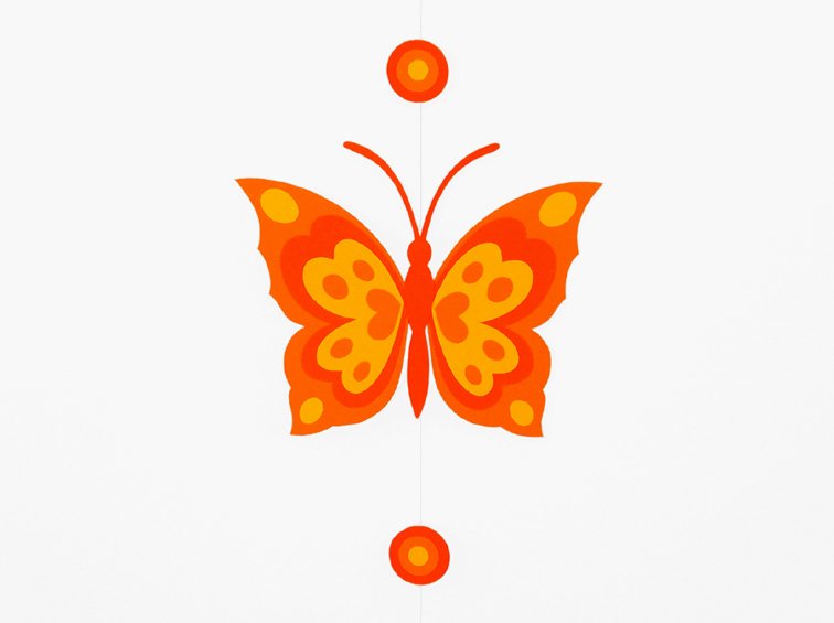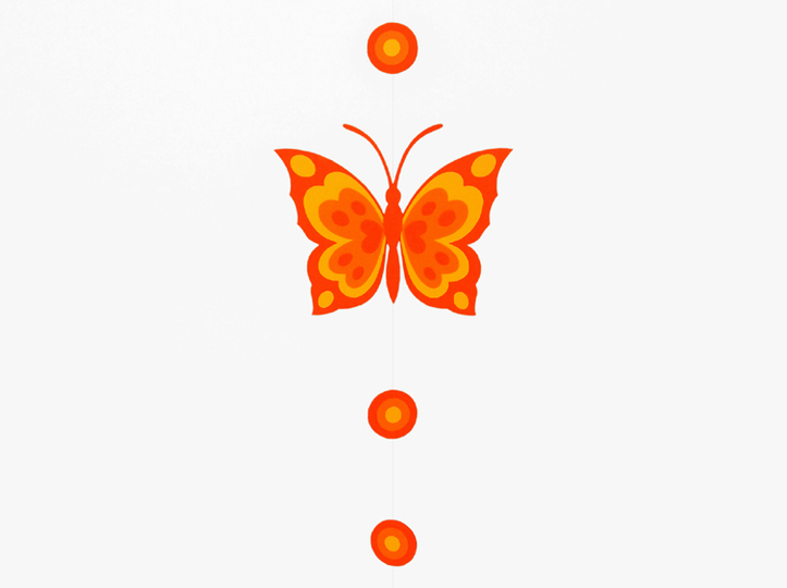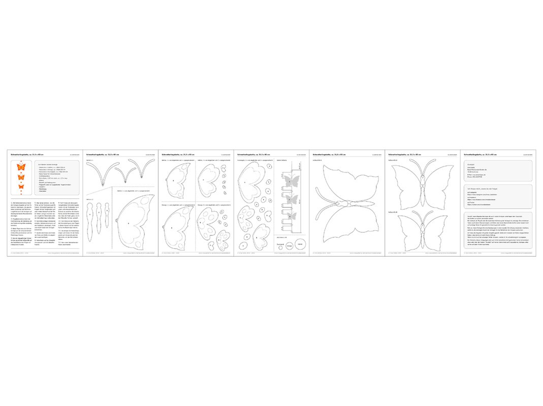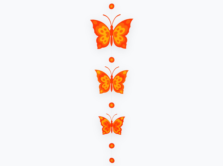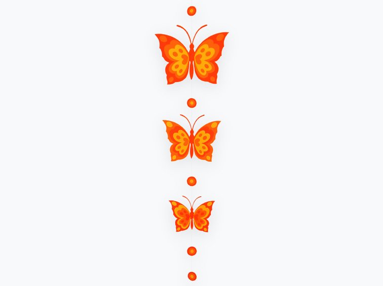 Der größte Schmetterling ist ca. 21,5 cm breit. Die Kette insgesamt ist ca. 83 cm lang.