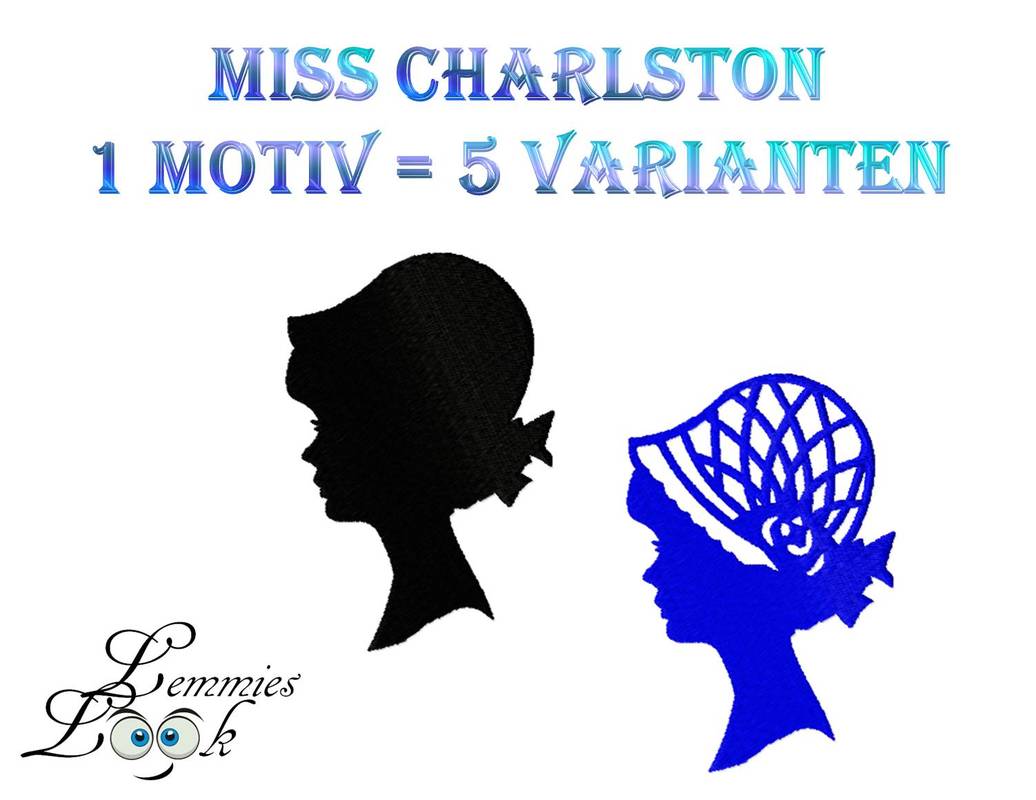 Stickdatei MissCharlston in 5 verschieden Varianten für den 10 x 10 Rahmen.