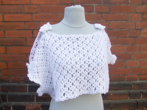Die pdf-Dateien enthalten sehr viele Arbeitsbilder für jeden Poncho und die weiße doppelte Häkelblüte, gleichfalls Hinweise zu Größenveränderungen.