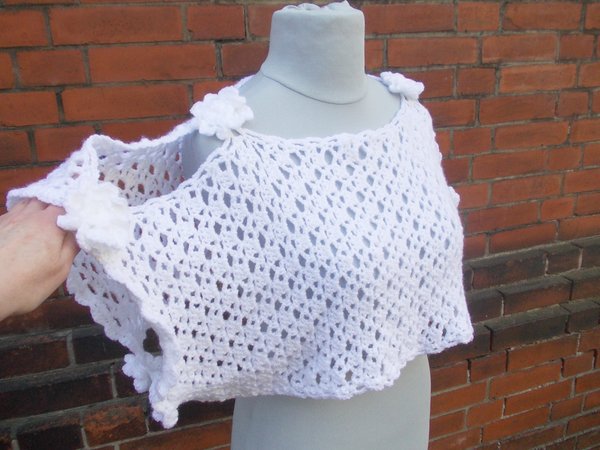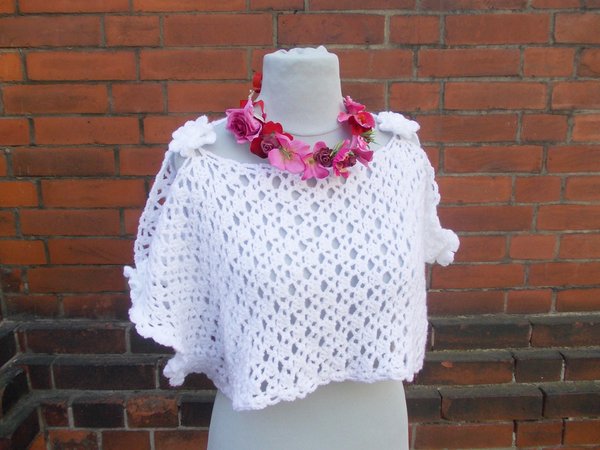 ZIP-Datei, bestehend aus 3 pdf-Anleitungen für die auf dem Titelbild und in den Galeriebildern zu sehenden Häkelponchos. Die Anleitung für den weißen Poncho enthält auch die Anleitung für die Blüten dazu. Die Blüten zum lindgrünen und zum apricot-farbenen Poncho sind in den Anleitungen nicht enthalten, diese Anleitungen zu den Blüten gibt es gesondert auch in meinem Shop.