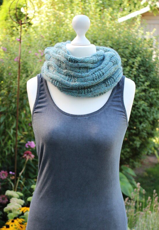 Der Loop ist 22 cm breit und hat einen Umfang von 125 cm, er kann aber ganz einfach in Länge und Breite verändert werden. Er wird 2 x um den Hals geschlungen und liegt dann halsnah an.