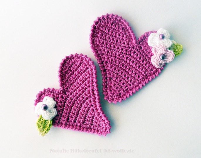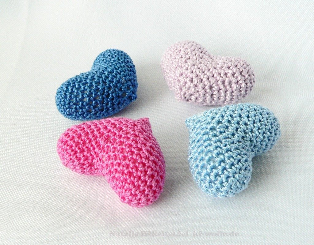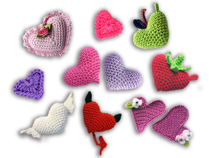 Diese PDF-Häkelanleitung besteht aus genauer Beschreibung und über 40 Fotos von Arbeitsschritten zum Häkeln von 10 unterschiedlichen Herzchen.