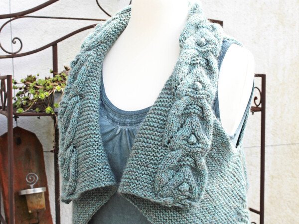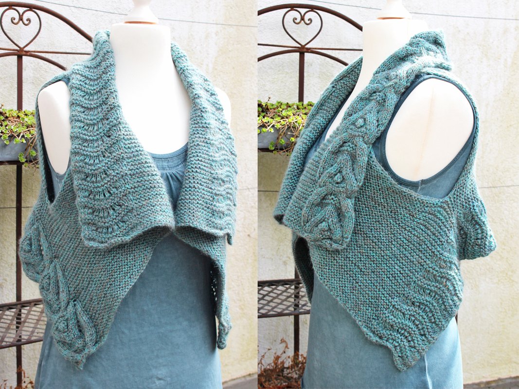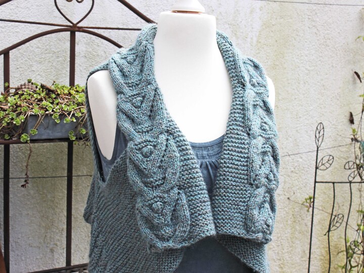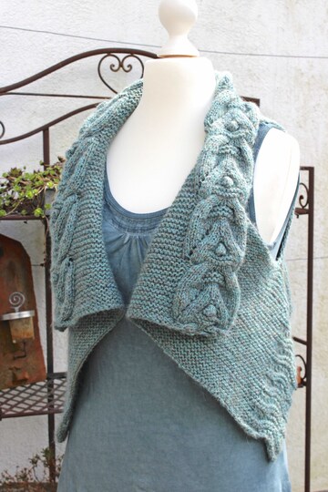 Mal so rum, mal so rum! Die Weste ANOUK ist ein wunderbares Projekt für alle, die es ein wenig verspielt lieben! Dieses in einem schlichten Rechteck quer gestrickte Bolero ist äußerst wandelbar, super chic und mit einer Prise Extravaganz "gewürzt"! Es kann entweder der plastische Loch-Zopf oder aber das schlichtere Ajour-Rippenmuster als Kragen getragen werden, die Bolero-Weste könnt Ihr lässig offen lassen oder mit einer hübschen Brosche schließen, ganz nach Lust und Laune.