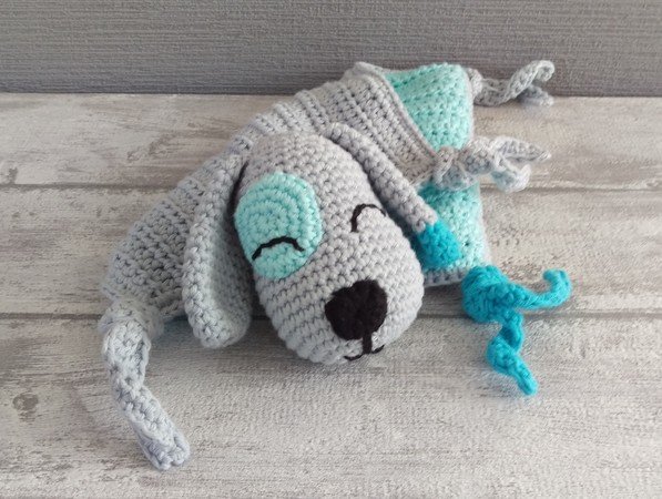 Häkelanleitung für ein Schmusetuch in Form eines Hundes