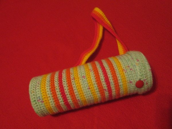 In dieser Transportbox bringen Ihre Kinder ihre Kunstwerke vom Kindergarten sicher mit nach Hause. Ohne Falten, ohne Eselsohren... Mit buntem, gehäkeltem Bezug
