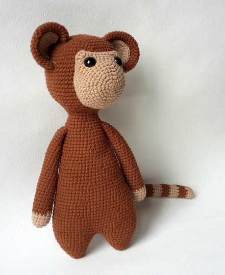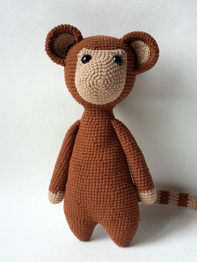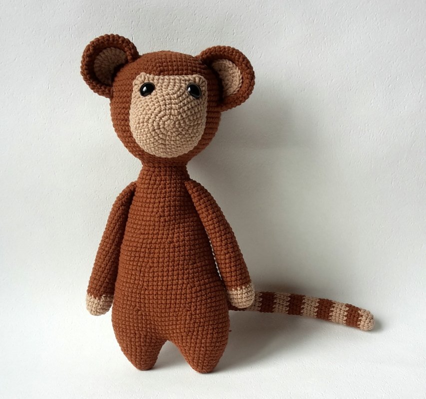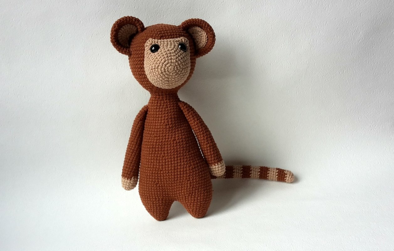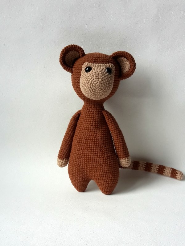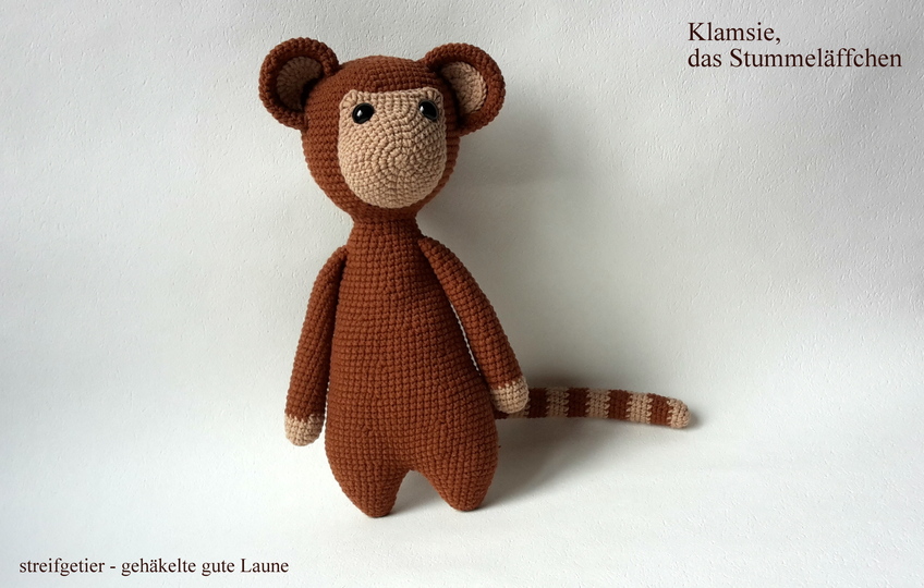 Diese Häkelanleitung beeinhaltet Klamsie, das Stummelbein-Äffchen