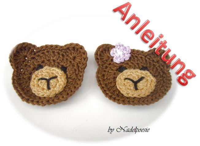 Leicht nachzuarbeitende Häkelanleitung für eine Bärchen-Applikation, die wahlweise für Junge oder Mädchen gearbeitet werden kann. Die Anleitung enthält beide Varianten.