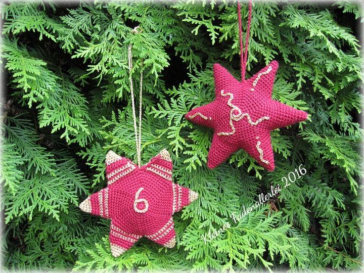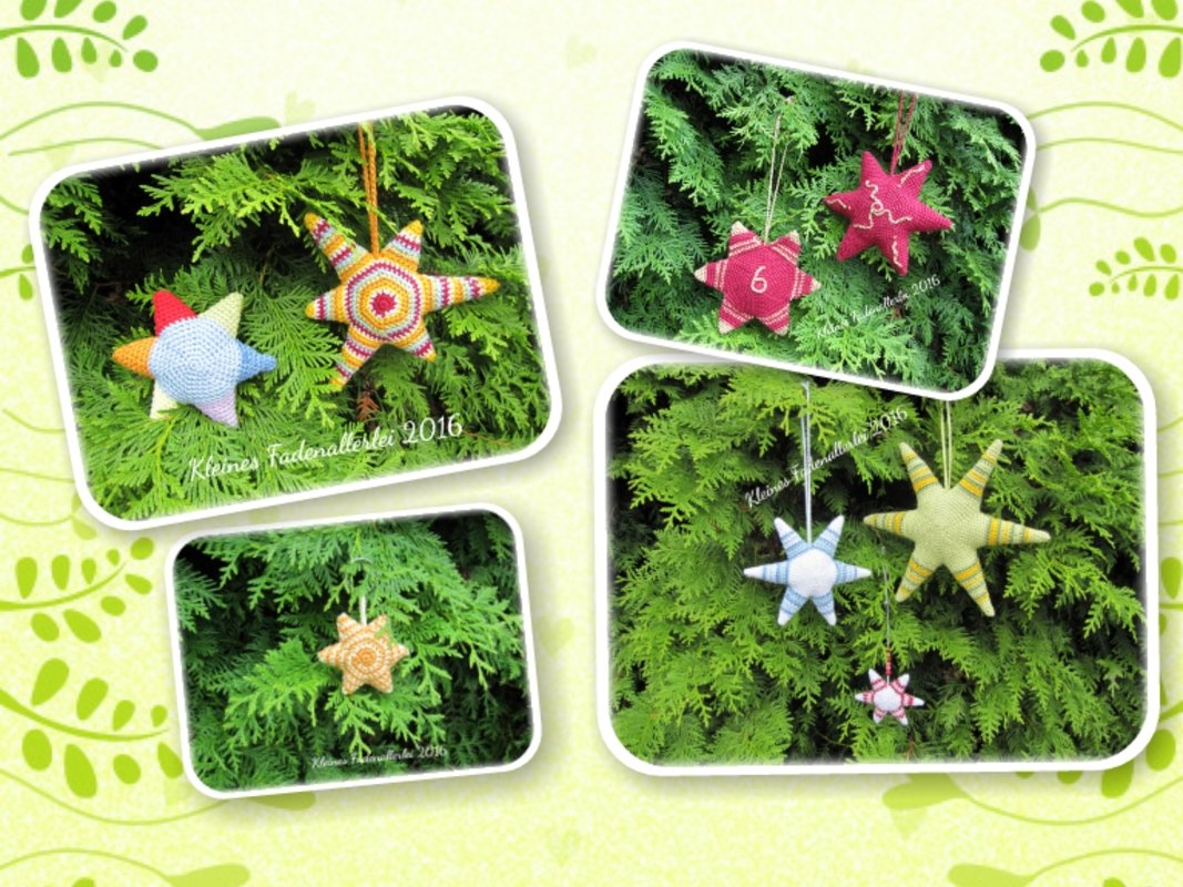Sterne und Sternchen in vielen Variationen und nicht nur zu Weihnachten ein toller Blickfang. Die Sterne sind mit Nadel 2 mm und Baumwollgarn (LL 125 m ~ 50 g) gehäkelt. Sie erreichen einen Durchmesser von 7 cm - 9,5 cm - 11 cm - 14 cm - 15,5 cm - 22 cm, je nach Garn, Nadelstärke und Festigkeit kann das jedoch variieren.