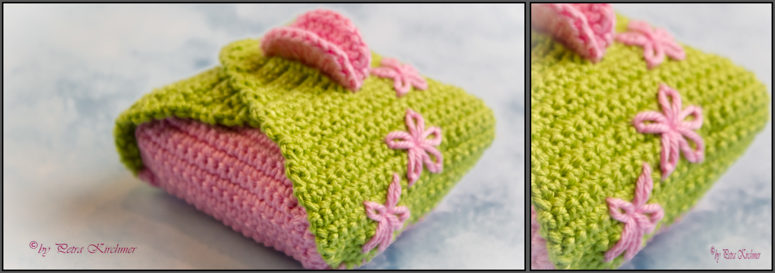 Um diese Geschenken noch zusätzlich in ganz viel Liebe zu verpacken, häkelt man einfach diese kleine Box und verziert sie mit kleinen Details.