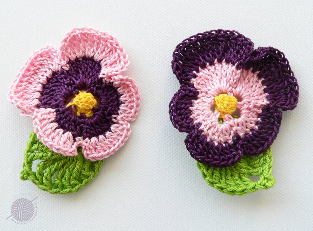 Diese PDF-Häkelanleitung besteht aus bebilderter Anleitung zum Häkeln von zwei Arten von Stiefmütterchen mit den Blättern. Damit können Sie zwei verschiedenen Arten Stiefmütterchen und Blätter dazu häkeln zum dekorieren des Hauses, zum basteln oder verschenken.