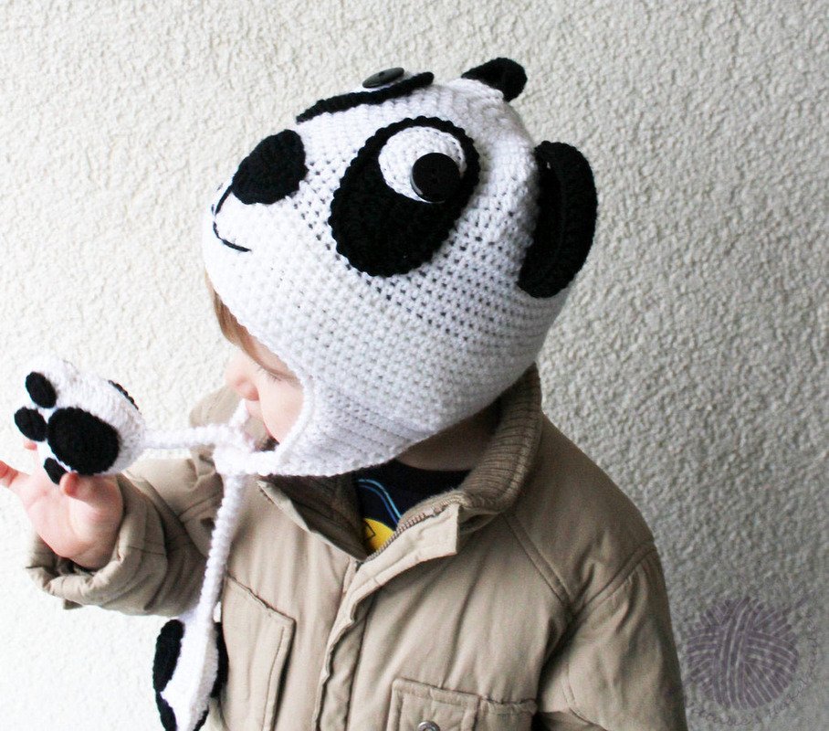 Häkelanleitung für den dazu passenden Schal finden Sie hier: https://www.crazypatterns.net/de/items/1406/warmer-kinderschal-panda-gr-veraenderbar