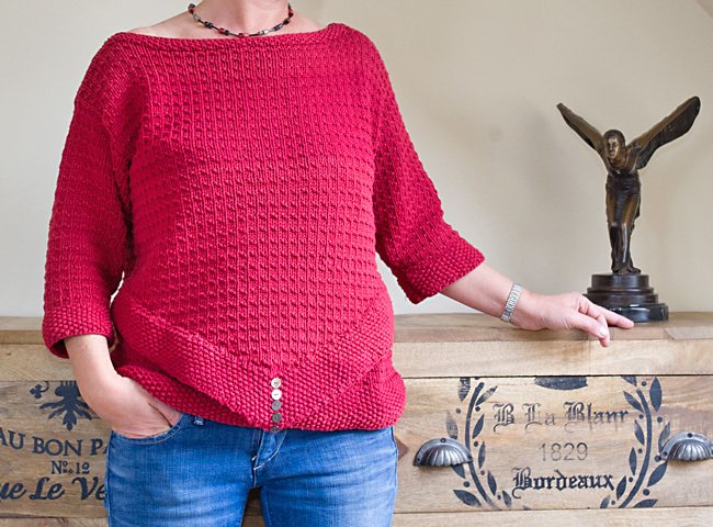Anleitung für einen raffiniert geschnittenen Pullover - hier gestrickt aus reiner Baumwolle. Perfekt für Frühling und Herbst - aber definitv auch in lauen Sommernächten einfach wundervoll.