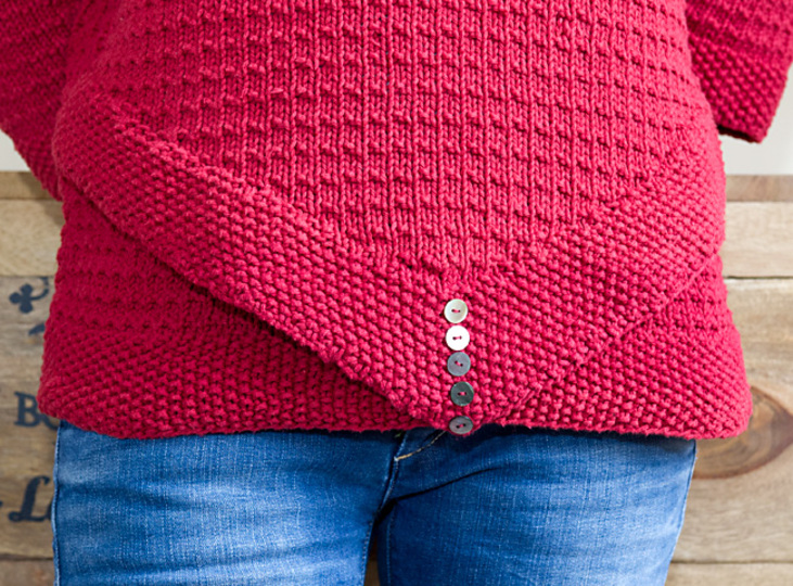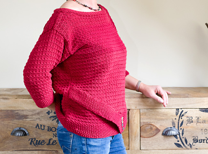 Der Pullover ist leicht oversized und einfach zu stricken - lediglich das untere Vorderteil erfordert etwas Konzentration. Aber der Strickprozess wird sehr detailliert beschrieben und außerdem durch Fotos unterstützt.