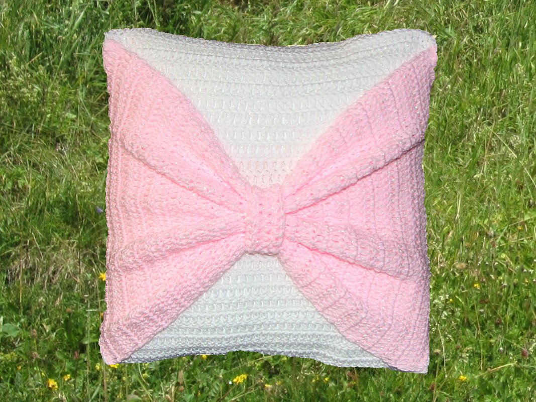 Häkeln Sie sich doch einmal ein tolles dekoratives Schleifen-Kissen, mit dem Sie auch noch toll kuscheln können.