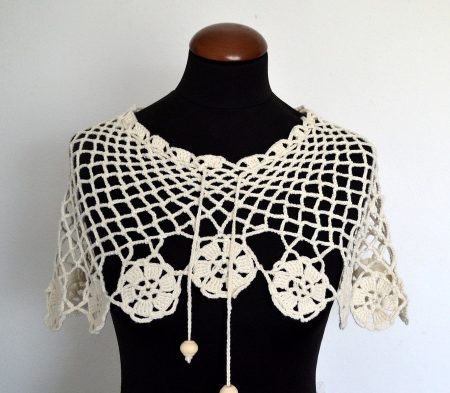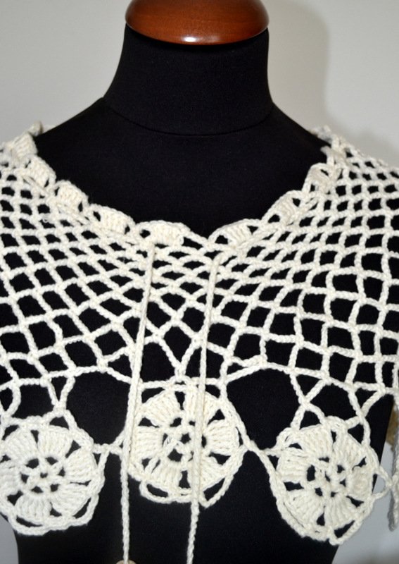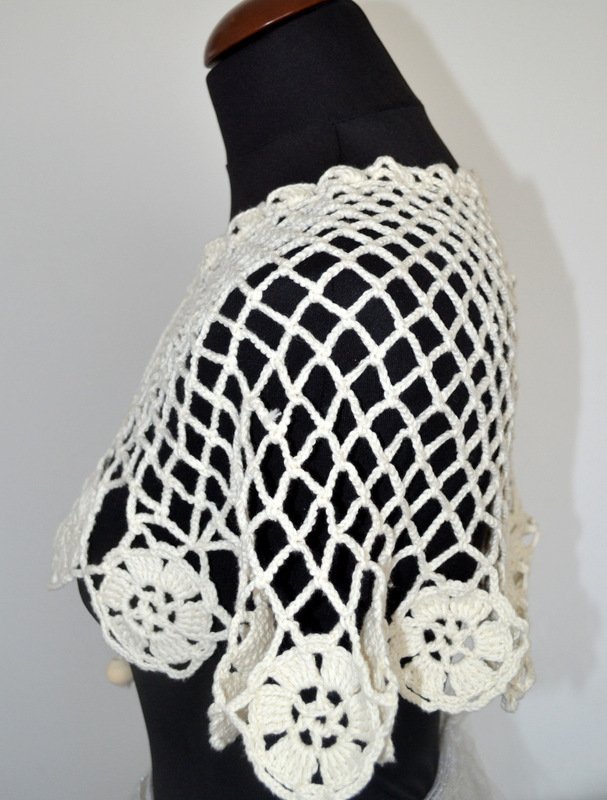 SOMMER PELERINE ÜBERWURF PONCHO KURZ Eine Sommer Pelerine , sehr leicht, romantisch und feminin, ergänzt es jedes Outfit. Hier kannst du nach einfacher Anleitung selber einen Überwurf kreieren. Material : 100 % Baumwolle Kenntnisse vom Häkeln: Luftmasche, Stäbchen, Doppelstäbchen Die Anleitung ist in Uni Größe, bzw. man kann sie beliebig und einfach ändern . Dies ist nicht das fertige Produkt, sondern eine Anleitung zum Herstellen des Produkts . Alle Teile sind aussführlich beschrieben und bebildert. Anleitung zum Ausdrucken als PDF - Datei. Was du benötigst: 100 g Baumwolle ( 50 g = 115 m ) Häkelnadel Nr. 3