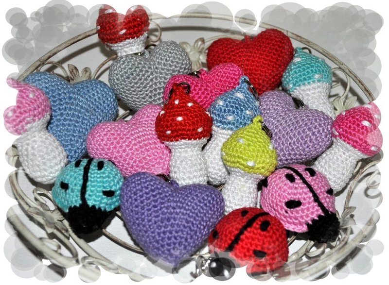 Kleine selber angefertigte Anhänger bzw. Glücksbringer sind doch immer eine schöne Geste. Einfach als Geschenk so zwischendurch oder als kleiner Glückbringer oder als Liebesbotschaft oder …. Sie sind klein, schnell gehäkelt und erfreuen bestimmt jeden Beschenkten. Egal ob sie als Schlüsselanhänger, Taschenbaumler..... dienen.