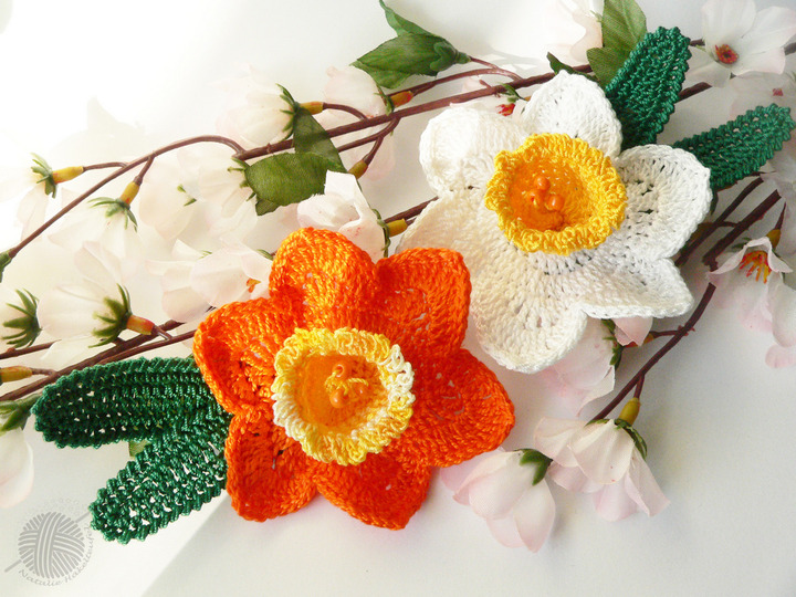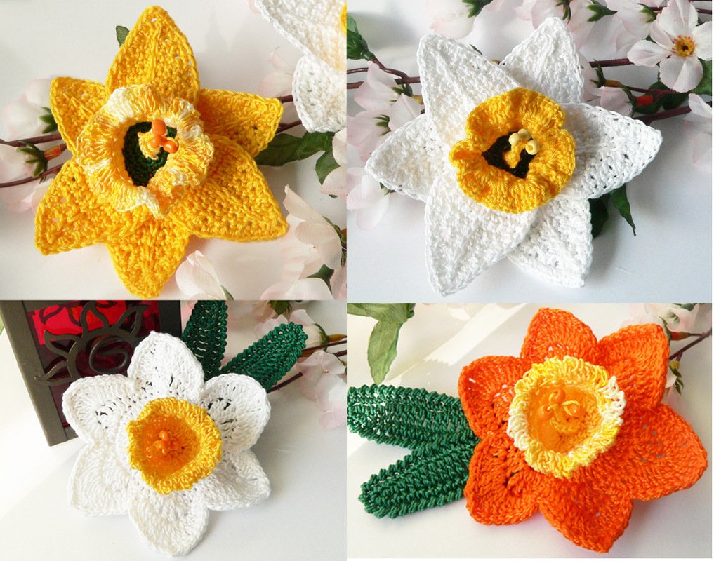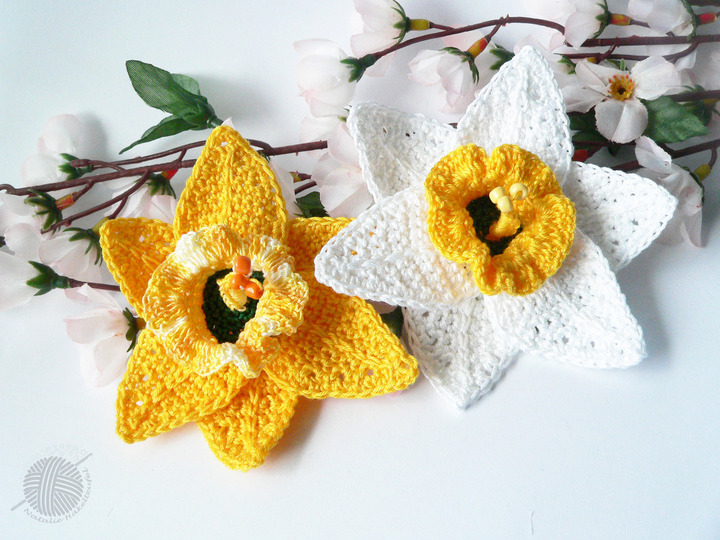 Die PDF-Häkelanleitung besteht aus bebilderter Anleitung zum Häkeln von zwei Arten von Narzissen mit oder ohne Blättern. Damit können Sie Narzissen häkeln zum dekorieren des Hauses, zum basteln (z.B. eine Broschen) oder zum verschenken.