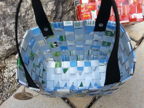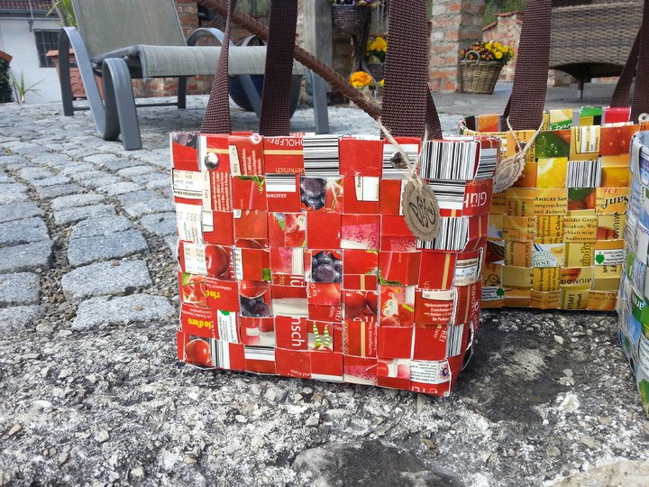 Taschen aus Tetra Pack sehen echt toll aus und das Material fällt in jedem Haushalt an. Ob als Strandtasche in groß, als Täschchen für Shampoo und Spülung in klein, oder zum Einkaufen . Die Tasche erfordert etwas Geschick und Geduld, dafür ist das Ergebnis sehr schön.