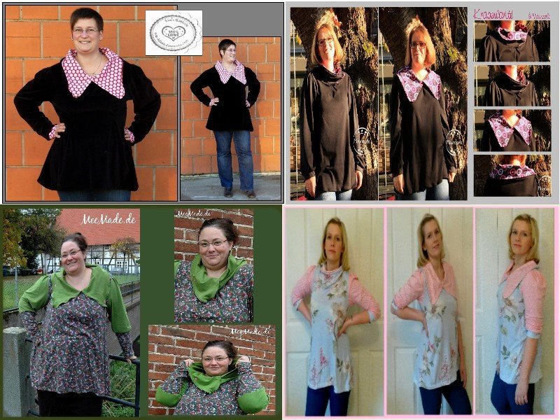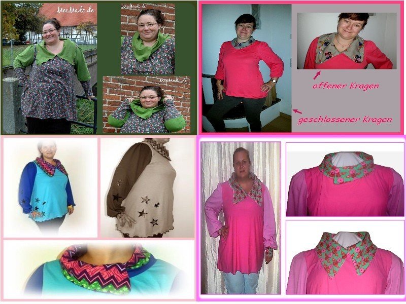 Nähanleitung und Schnittmuster Oberteil Kragenvarieté ist von Größe 40 bis 54.