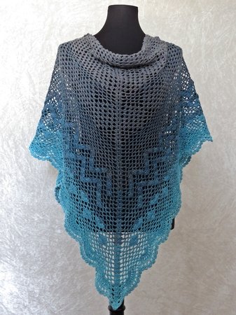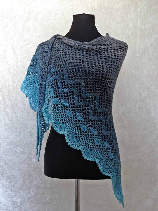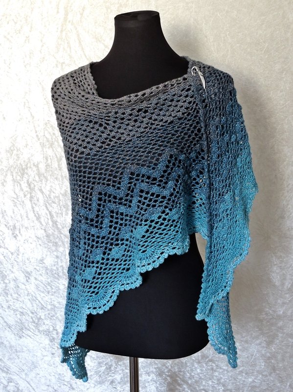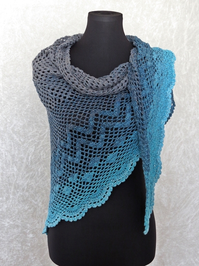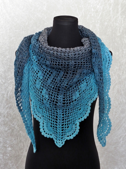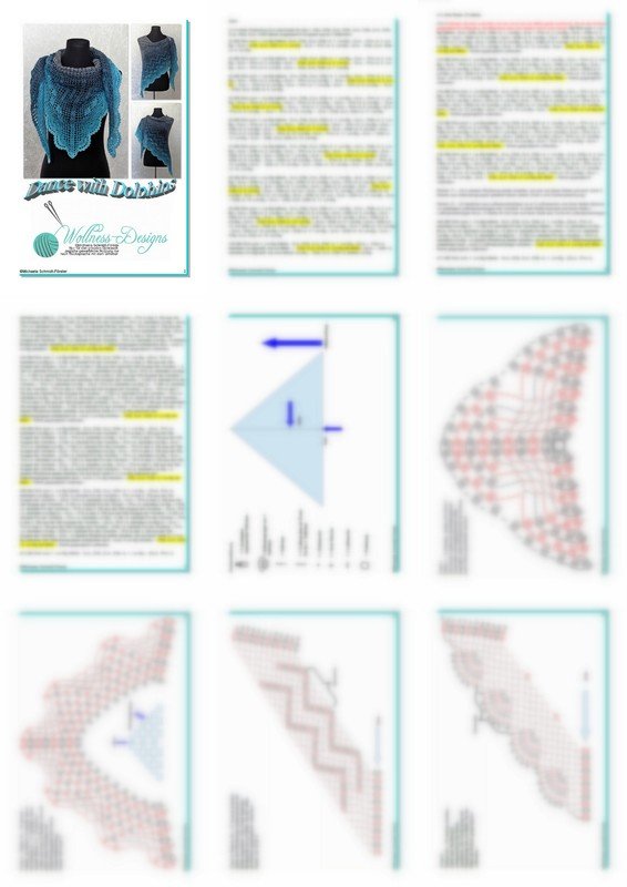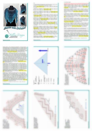 Die Anleitung zum Dreieckstuch häkeln umfasst 21 Seiten und enthält eine maschenweise ausgeschriebene Anleitung, detaillierte und professionell erstellte Häkelschriften (Charts) sowie eine Schemazeichnung.