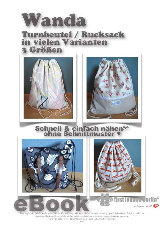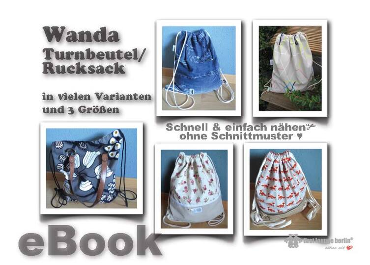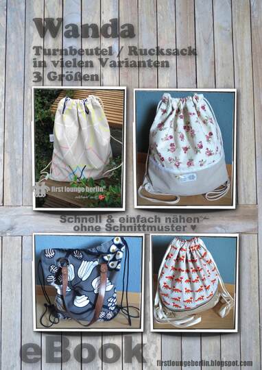 E-Book Wanda ♥ Universaler Turnbeutel bzw. Beutel-Tasche in 3 Größen vom etwas kleineren Turnbeutel für Kinder bis zum einfachen Rucksack für Männer, hier ist für jeden etwas dabei. Ob einfach gefüttert, mit Reißverschluss oder Ösen, in diesem eBook wird alles ausführlich beschrieben. Dieser Turnbeutel wird ganz ohne Schnittmuster genäht und ist ganz einfach im Handumdrehen fertig genäht. Die Größen können nach eigenen Wünschen unendlich erweitert werden und man ist somit sein eigener Designer.