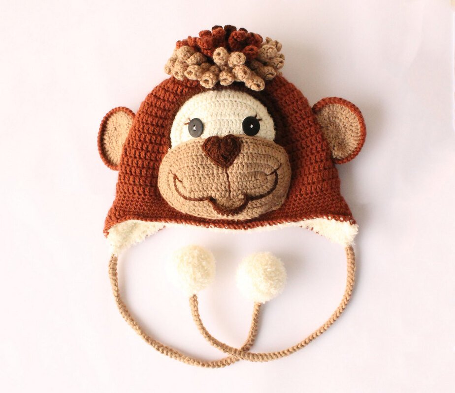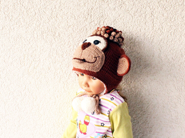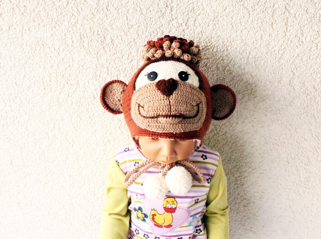 Diese PDF-Häkelanleitung besteht aus bebilderter Anleitung zum Häkeln einer Mütze in der Form eines Affen mit den Ohrenklappen. Die Mütze kann sowohl mit dem doppeltem Rand für den Winter oder ohne für den Herbst gehäkelt werden. Die Größe wird während des Häkelns des Bodens der Mütze angepasst (wird in der Anleitung erklärt).