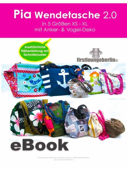 eBook mit Nähanleitung und Schnittmuster inklusive 5 Größen für Wendetasche Pia♡