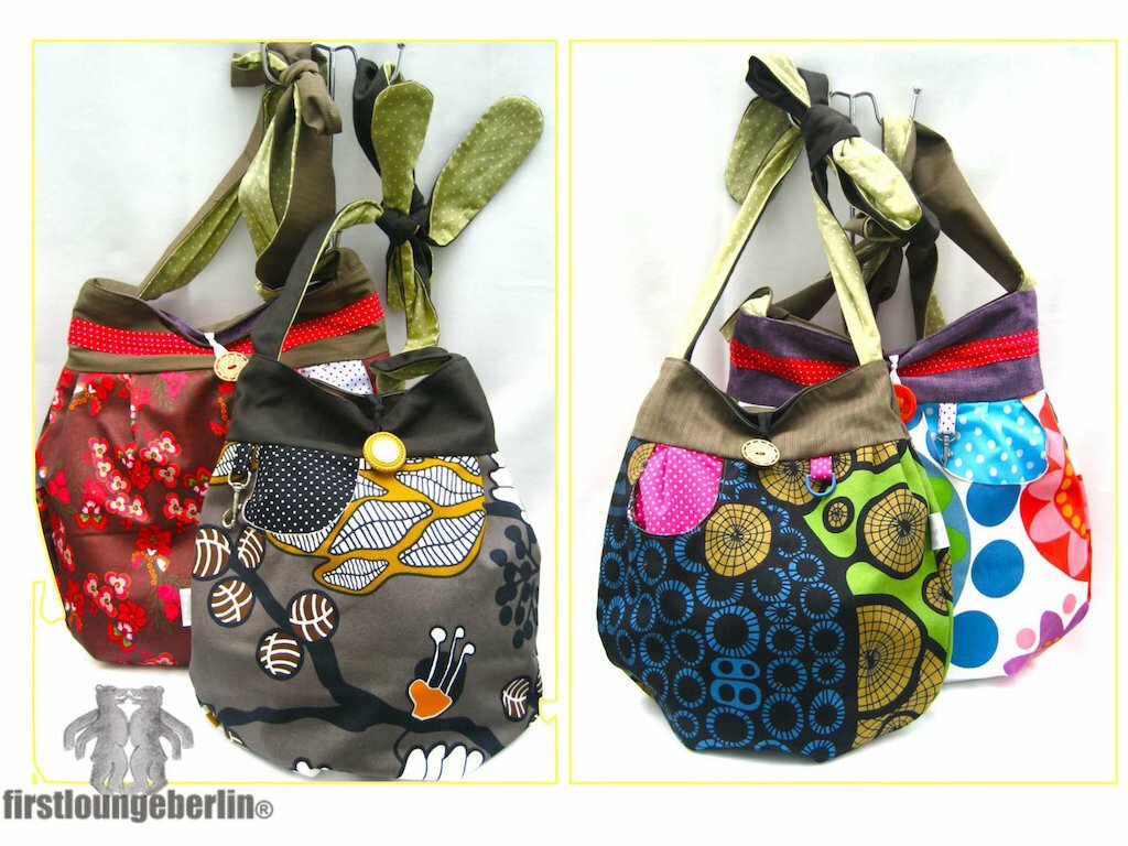 Hier erhältst Du 2 eBooks zum Kombinieren: Coco-Wende-Tasche, von innen und außen abgebildet, also gewendet und Kiki klein und mittel klassich nicht zum Wenden.